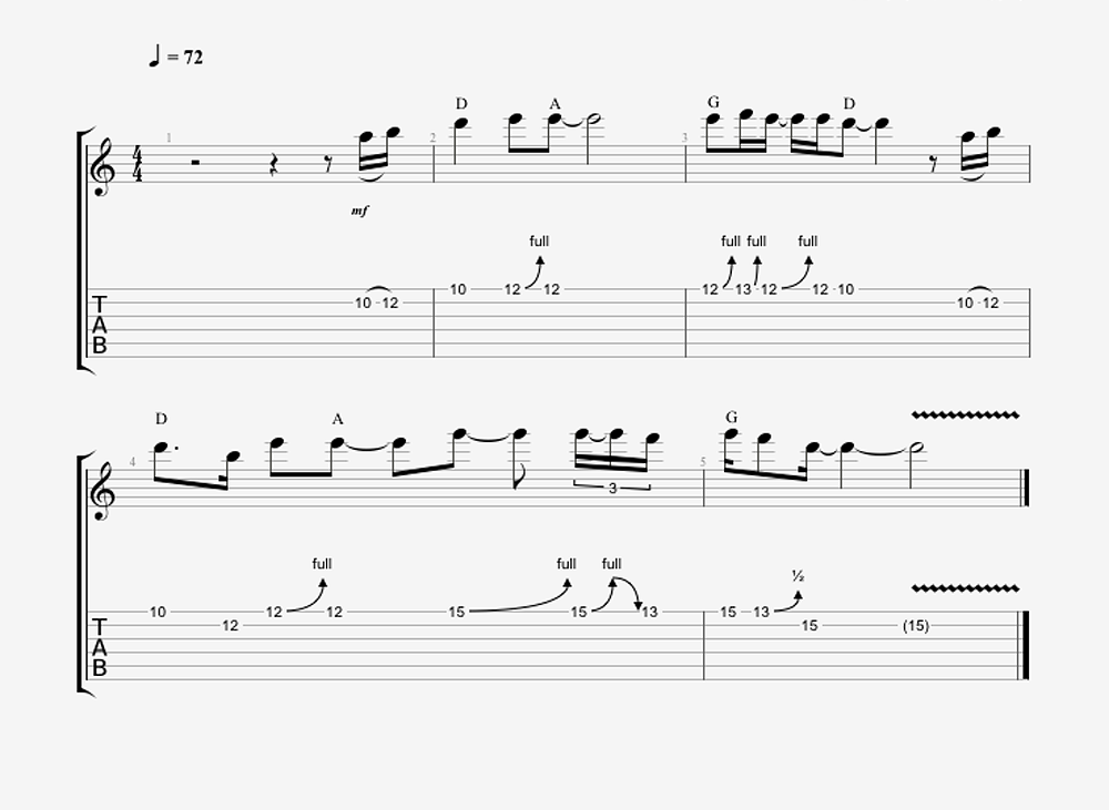This is a similar phrase to "Makin' Money 1", our previous example, just moved up the octave with a variation on the blues lick at the end. Note how the blues lick features a first finger bend then "tweaks" the third just barely from minor to major. This is a Clapton staple and an element of both money maker licks that you should spend some real time on.